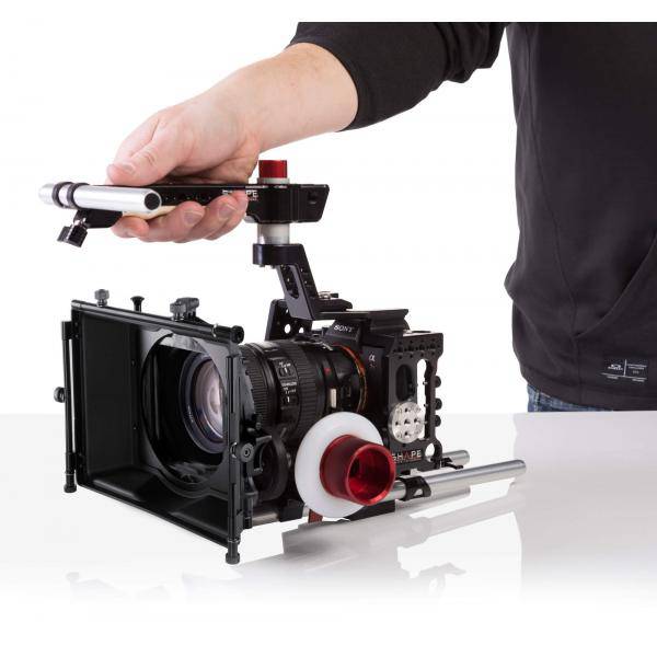 SHAPE camera accessories offer versatility and precision for professional camera setups. This collection includes an ergonomic, removable Top Handle for Sony XLR-K2M with multiple mounting options, a Quick Release Rod Base System for easy camera mounting, a protective Sony A7R III/A7 III Cage with attachment points and rod clamps, a Follow Focus Friction & Gear Clic for precise focus control, a durable 0.8 mm Pitch Aluminum Gear for cine lenses, a Carbon Fiber Matte Box 4x4 for filter support, and a 15 mm LW Clamp for Top Handle with secure fixation options, all designed to enhance functionality and compatibility in filmmaking setups.