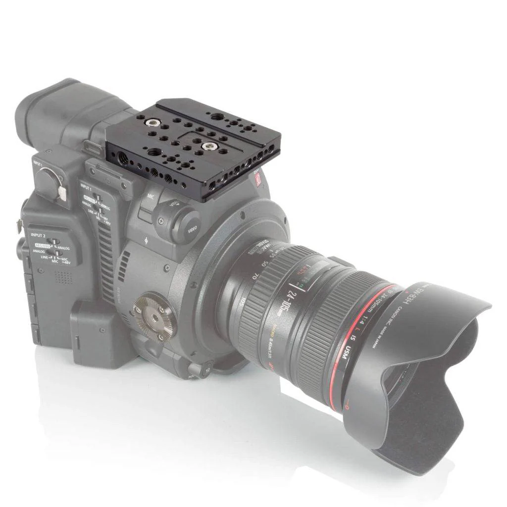 Lightweight and robust CNC-machined aluminum top plate designed to support and facilitate the manipulation of your Canon C200. The top plate offers an array of 1/4" and 3/8" threads that can be used to attach options around the camera, such as our top handle and EVF mount bracket (also compatible with Canon's C200 original top handle).